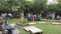 Notre petite prestation a eu lieu dans ce petit écrin de verdure qu’est le jardin partagé « le Bonheur potager » situé au fond du parking « Jean Jaurès ».